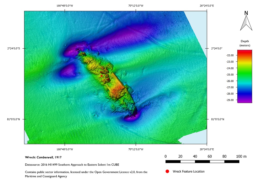 Data provided by VDL was used to build a case study of the SS Camberwell, which lies 5.5 miles to the east of the Isle of Wight. “VDL has long been aware of the existence of the Camberwell which lies within dredging area 340,” says Will Drake, “and we were delighted that our survey data could help the project team to learn more about this forgotten wreck and bring its story to light.”